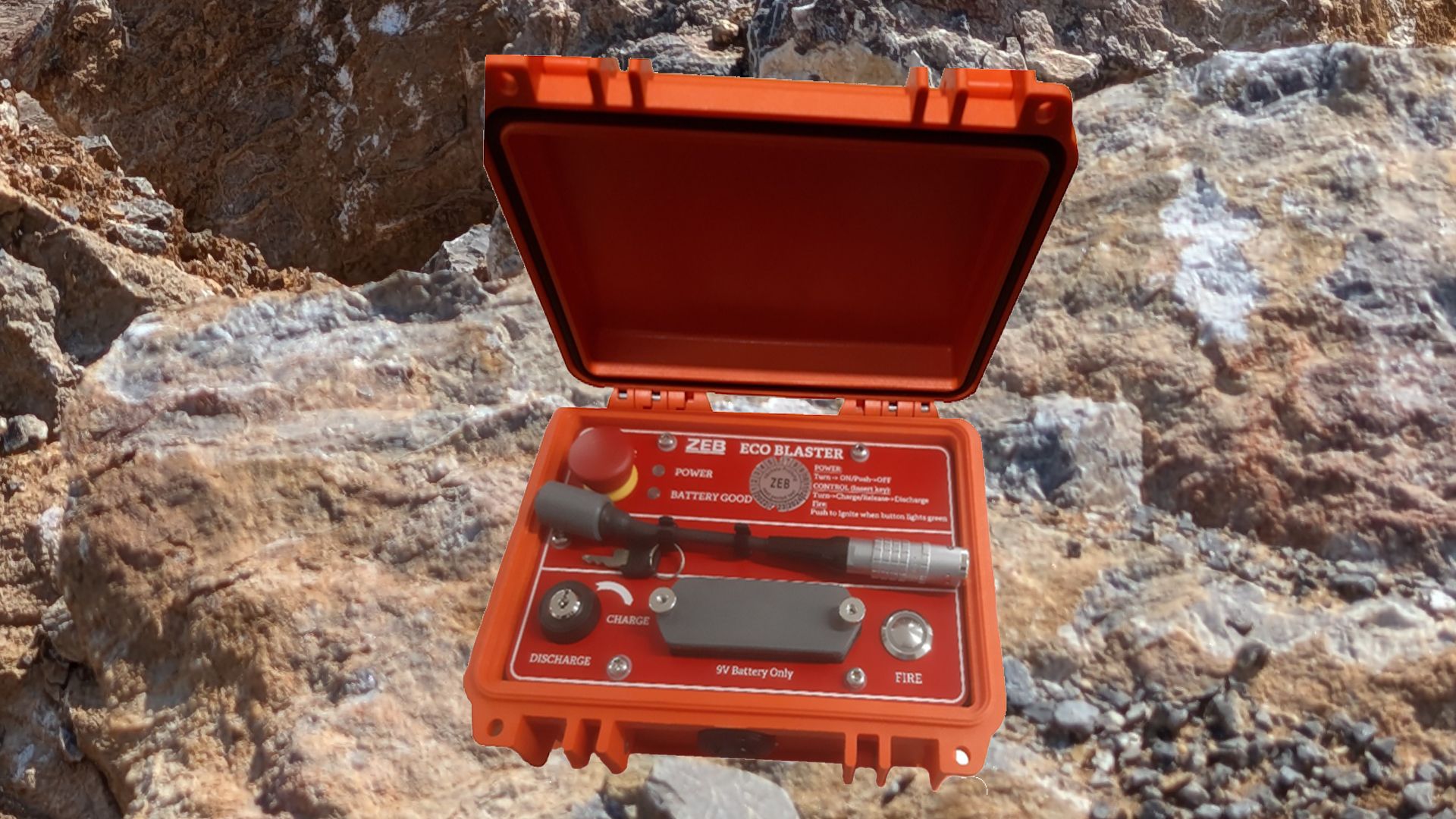 The ZEB ECO Blaster is a simple battery powered Shock Tube Blasting machine secured with a mechanical key.